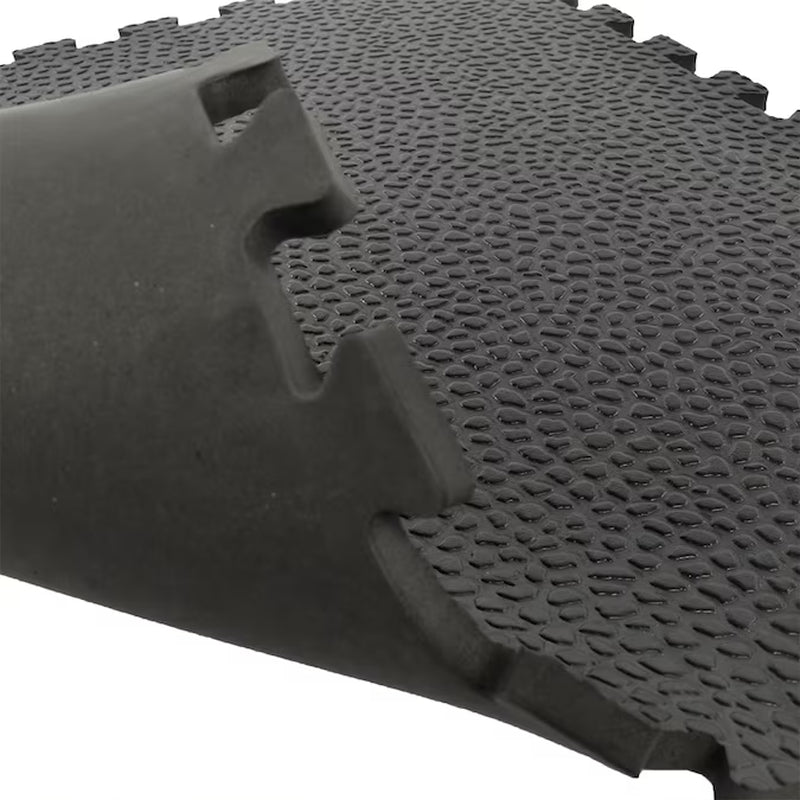 Home gym flooring needs to be able to not only protect existing floor, but provide a stable and comfortable surface for workouts. With Greatmats super high density EVA foam Home Gym pebble Mats, home gym flooring that meets both needs can be installed quickly and easily by anyone - at an affordable price. These interlocking home gym flooring mats create a surface that is forgiving to bones and joints without sacrificing performance for mid to lightweight strength training and home exercises. They are great for use over concrete or any hard flat surface. Use these gym mats for home body weight exercises and cardio workouts as well as exercise machines and lighter free weights. The durable pebble textured top surface offers excellent slip resistance. Plus without the need for adhesives in the installation process, this home gym flooring, can easily be pulled up and relocated in the event of a move or when temporary workout spaces are needed.